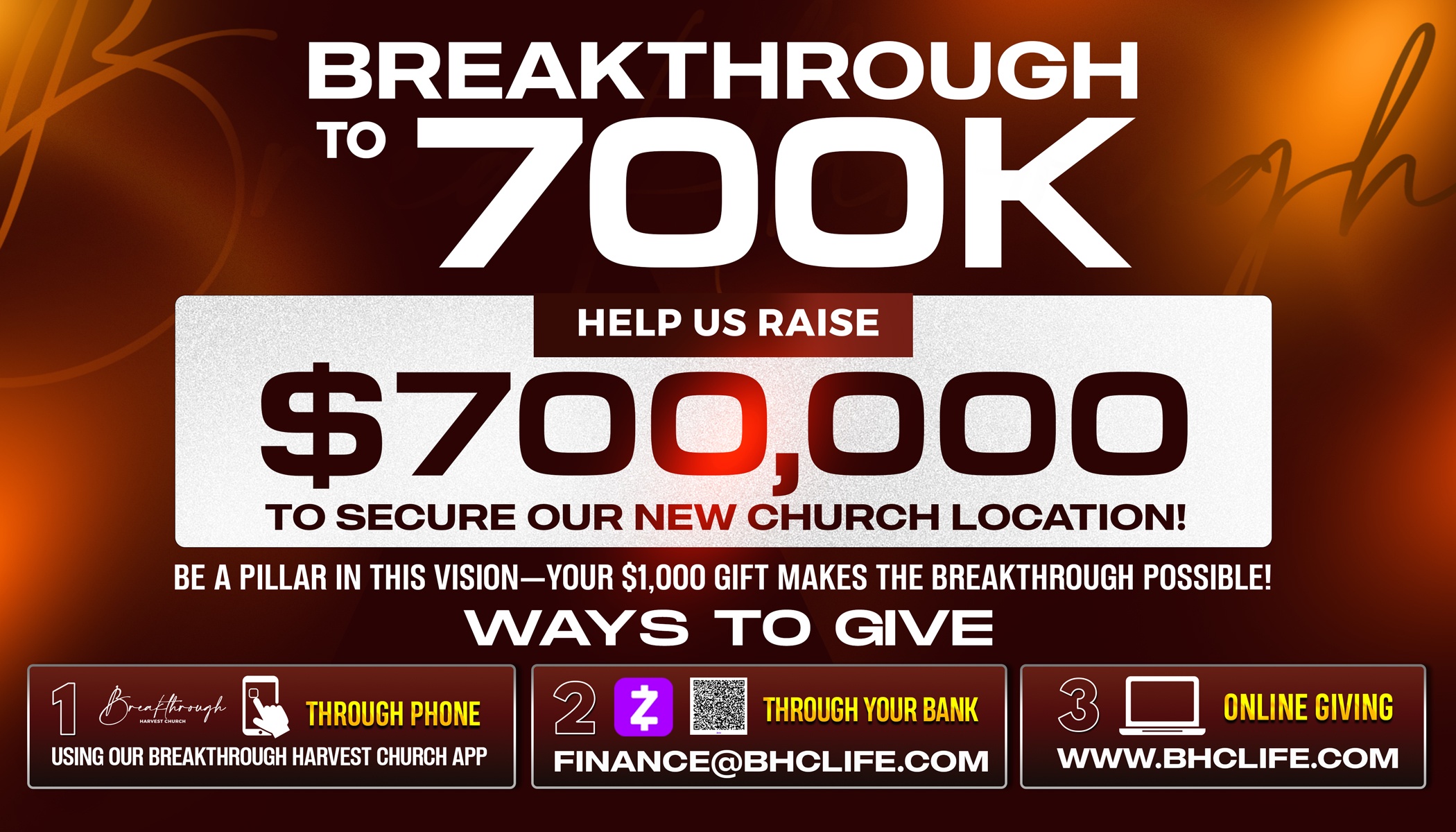 You can now give through one of our payment plan options when you select your desired amount. Those who donate $3,000 or more will receive special recognition for their Kingdom investment. Click the donation amount you’d like to apply for and choose your payment plan today.